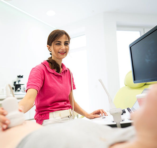 Bei Risikoschwangerschaften bieten wir die Nackentransparenz-Messung oder Pränataltest zur Feststellung genetischer Chromosomenabweichungen.